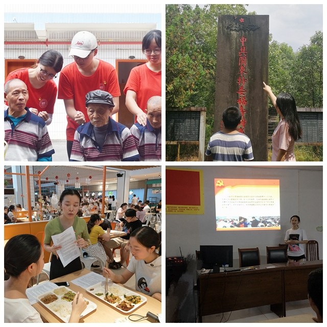 仅走进了老人们的内心,更是让党员同志们感悟到 “敬老、爱老、助老”传统美德的重要意义;高雅同志在重庆市梁平区戴斯小区开展国家政策宣讲实践活动,为准大学生们普及助学助贷,畅通求学之路;缪伊雯同志回到家乡革命老区--福建省宁德市寿宁县犀浦镇甲坑村感悟老一辈革命先烈的伟大革命精神,接受红色教育,传承红色基因,补足“精神之钙”;暑期留校准备考研的杨凯麟、王旭等共8名党员同志开展了“考研期间膳食建议”实践活动,结合专业知识向各位考生推荐合理的膳食建议,帮助考研学生能够更好的学习和生活。