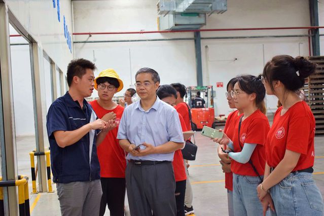 经过一天的调研,他们终于来到此行的最后一个目的地——群山环绕,云兴霞蔚的重庆华绿生物有限公司。“企业占地250亩,生产技术和设备在西南片区是最先进的,日产150吨金针菇,主要在西南片区进行销售。”负责人介绍道。志愿者们刚一踏入生产车间,便感受到扑面而来的凉意,因为金针菇的培植需要,车间温度都严格把控在20摄氏度以下,不同的工艺流程也有不同的温度湿度要求。志愿者们跟随着专业教师和负责人学习金针菇栽培技术,感叹生产的智能化和自动化。他们穿梭在车间中的大小通道,切身感受金针菇工业化的生长环境,震惊小小的菌菇为打造丛林菌谷,推动当地经济发展所带来的大作用。