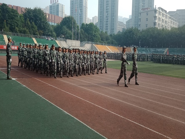 在许多人心里,军训或许意味着暴晒,酸痛,流汗,站的麻木的双腿,新时代青年唯有感悟今日的生活来之不易,才会倍感珍惜。军训期间除了枯燥无味的训练,还有一系列精彩有趣的活动。9月24日早上8:20进行徒步拉练活动,队伍集合完毕后,排着整齐的队列,同学们在教官的指挥下有序前行,一路上同学们精神饱满,队伍之间互相拉歌,有效地缓解拉练带来的疲劳,同学们互相鼓励,“流血流汗不流泪,掉皮掉肉不掉队”。队伍安全返校,顺利完成了持续近两个小时的拉练活动。9月29日进行的是新生歌咏比赛,夜晚的训练场上时常传出他们铿锵有力的歌声,歌声嘹亮。“苦不苦,想想长征二万五,累不累,比比革命老前辈”,军训的最后一天,是为大学军训交上十几天来付出的答卷的关键时期,更是各个学院比拼的重要时期,即19级全体同学进行军训汇演,他们充满了斗志,一腔热血,让军训无悔于青春,这也标志着军训活动正式结束了!