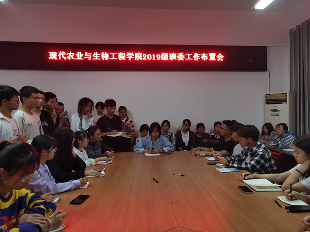 为了使2019级新生班委能够全面提升能力,进一步更好地凝聚学生班委队伍、提升组织力和战斗力,更好地服务于同学。现代农业与生物工程学院于2019年10月8号晚上18:10在格律楼3416会议室展开2019级班委工作布置会,全体2019级班委和代班参加了本次会议,2019级辅导员陈丹老师出席本次会议。