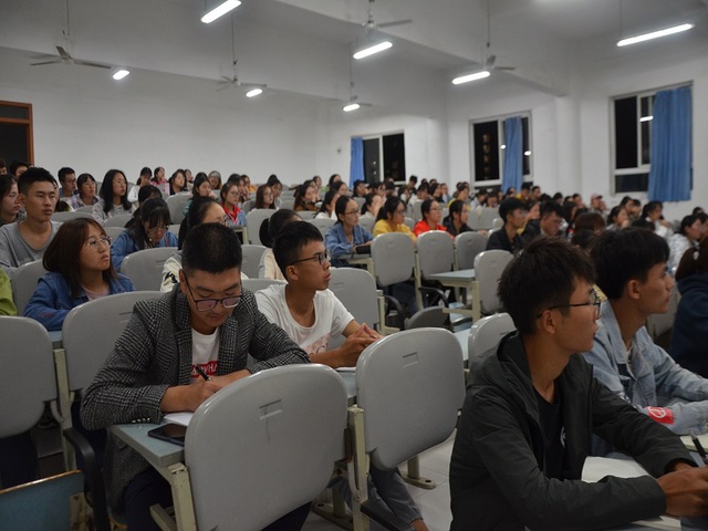 讲座伊始,梁珊老师介绍了本次讲座的目的,然后由万继涛学长开始讲述。万继涛学长先放了一个视频介绍重庆市酉阳第一中学。接下来万继涛学长从四个方面向师范生们讲述了在重庆市酉阳第一中学当教师需要注意的事项。