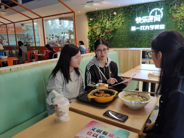活动伊始,党员同志们深入南苑快乐食间食堂“合理膳食,健康你我”志愿活动,结合专业知识开展膳食宣讲活动,向各位大学生推荐合理的膳食建议,针对大学生对食品健康与安全、食品法规、膳食营养搭配等知识和管理体系欠缺等问题进行一系列宣讲与答疑解惑。紧接着,通过食品安全与营养宣讲,发挥专业所长,普及一些关于膳食搭配的一些方法,针对考研学子饮食不合理的情况,张应玲同志根据营养学专业知识,结合考研学子目前的实际情况,为其量身制定了膳食计划,助力打造“健康膳食”新生活。最后吴雨轩同志总结了此次志愿活动,她说道,开展“合理膳食,健康你我”膳食宣讲志愿活动,不仅使大学生更加了解食物、提高健康素养,同时也是一次锻炼自身能力的好机会。至此,志愿活动圆满结束。