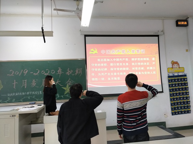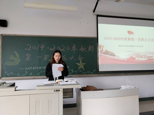 2019年10月21日,现代农业与生物工程学院学生第二党支部在诚意楼203开展了"现代农业与生物工程学院学生第二党支部2019年秋期第一次党员转正大会"。此次大会有现代农业与生物工程学院学生第二党支部3名正式党员及7名预备党员参与,由学生第二党支部书记何思源同志主持,讨论苟金港同志的如期转正问题。