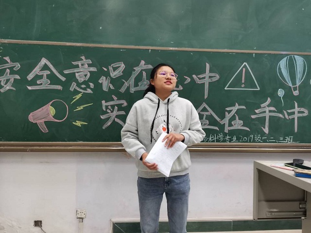为了增进生科专业同学之间的交流与合作,了解各班活动的参与度;更是为接下来生科同学即将开展的实验课程做好安全理论方面的准备,降低实验事故发生的概率。2019年11月6日早上7:30,现代农业与生物工程学院生物科学1、2、3班的全体同学在三个班学委的组织下,于诚意楼02阶梯教室开展了以“安全意识在心中,实验安全在手中”为主题的特色早自习活动。