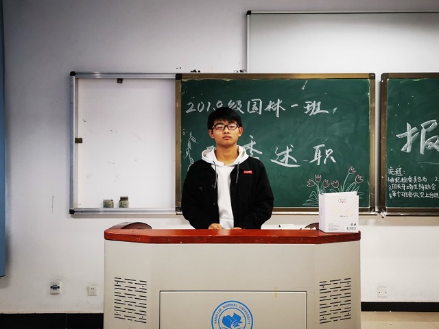 为了让同学们对班委们的工作有清晰的了解,并让班委们知晓班上同学对自己的意见。2019年11月10日下午4时20分,现代农业与生物工程学院2019级园林 1班于崇礼楼317开展了以“班委述职报告会”为主题的特色班会。本次活动由园林1班班长陈磊担任主持人,19级园林1班全体同学参与。