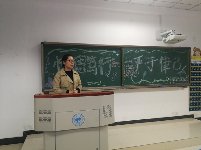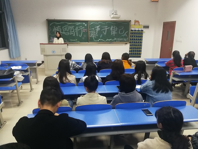 为了让同学们反思前一段时间的学习,同时为期末考试做好准备,2019年11月10日18:00现代农业与生物工程学院2017级食品科学与工程1班于崇礼楼316开展“慎思笃行 严于律己”为主题的特色班会活动。本次活动由学习委员胡玉莲主持,2017级食品科学与工程1班全体参与,特别邀请了班导师谭飔老师参加。