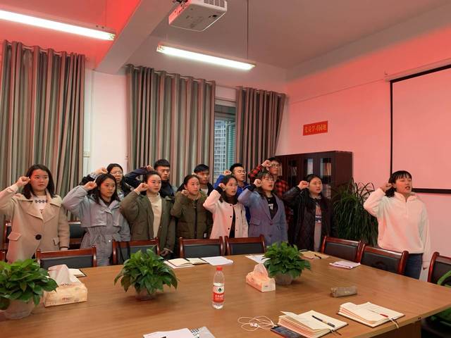 会议伊始,陈丹老师清点出席人数并宣布会议主题——讨论预备党员的如期转正问题。紧接着,通过举手表决马腾同志为监票人,郑皓月同志为计票人。之后,转正对象余慧同志宣读转正申请书以及汇报近期思想情况。她表达了对党的向往,对党的忠诚,并表示坚定不移跟党走,为党的工作付出自己的力量,为共产主义事业奋斗终生。然后,余慧同志的入党介绍人呼雪琦、李琳同志分别介绍对余慧同志的培养考察情况并表明本人同意介绍余慧同志如期转正。发言完毕后,有投票权的党员是否同意余慧同志成为正式党员进行投票。经支部党员大会讨论投票决定,同意余慧同志如期转正。再然后,陈丹老师对预备党员寄予厚望,希望他们随时与党中央保持一致,为同学服务,做好学生表率,加强自我要求。同时,希望余慧同志以此为契机,以更高的标准,更高的要求去规范自己在日常工作中的言行,要真正的做到以身作则,并且,余慧同志作为一名考研党员,也祝愿她能在今年12月份的考研中能够取得很好的成绩,也祝愿在座的每一位16级考研的同志都能够取得好的成绩,进入理想的高校进行深造。最后,全体党员进行宣誓,从而再次增强党员的党性观念,增强党员的历史使命感和社会责任感,激励了在座每一位党员以党章规范自己的言行,牢记党的宗旨,履行党员义务,做一名称职的、合格的无悔于党员称呼、无悔于入党誓词的一名真正的共产党员。至此,大会结束。
