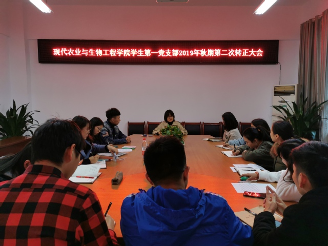 2019年11月18日,现代农业与生物工程学院于格律楼3416展开党员转正支部大会。此次大会由支部书记陈丹老师主讲,第一支部党员参加。