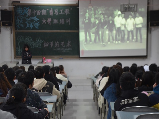 为了提高大学生骨干、团干部、青年知识分子等青年群体的思想政治素质、政策理论水平、创新能力、实践能力和组织协调能力,现代农业与生物工程学院于2019年11月28日12:10格律楼03阶梯教室开展“青马工程”讲座,此次活动主题为“细节的艺术”,主讲人为陈丹老师,现代农业与生物工程学院2019级全体学生骨干参加。