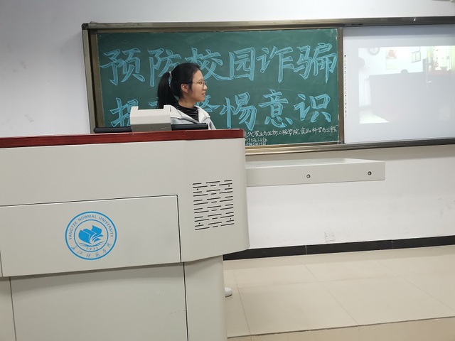 近来我院新生入学以来,多次发生诈骗事件,诈骗分子无所不用其极,以QQ,邮箱,短信、电话等方式向新生和新生的亲朋好友骗取财物,为提醒新生严加防范,切勿上当受骗,造成自身损失,借此警示同学。2019级食品科学与工程2班于2019年12月11日晚19:00在崇礼楼,开展了以“预防校园诈骗,提高警惕意识”为主题的特色晚自习。