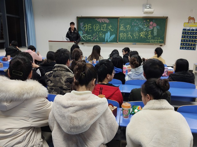 为了在紧张的期末复习阶段使同学们释放压力,劳逸结合,现代农业与生物工程学院生物工程专业2019级2班于2019年12月24日星期二晚19:00,在崇礼楼113开展了以“拒绝过大压力,期末终欢喜”为主题的特色晚自习活动。此次活动由生物工程专业2019级2班曾文强同学主持,全体同学共同参与。