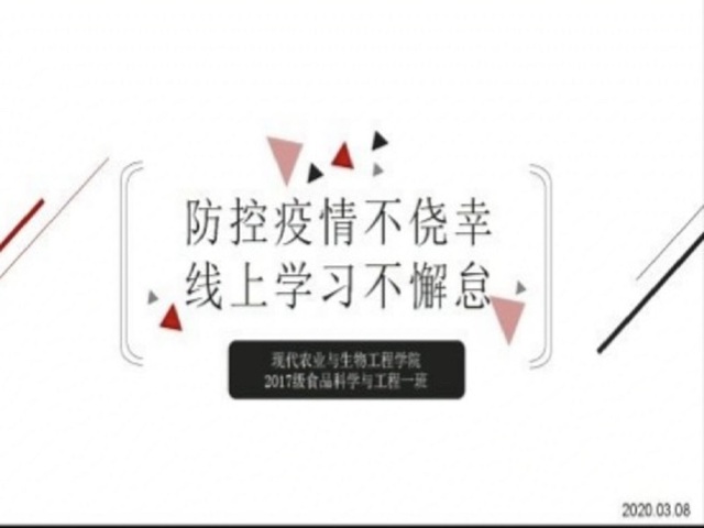 当前新型冠状病毒肺炎疫情阻击战还在继续,为发挥坚持党的集中统一领导、党员先锋模范作用,现代农业与生物工程学院学生第三党支部的学生党员结合自身专业于2020年3月8日下午16点在线上给本专业的同学们进行分享。