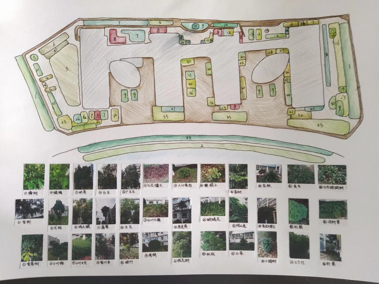 之后,同学们实地考察了小组负责的区域,经过了一系列的核对和采集修剪,完成了植物地图和植物色卡。