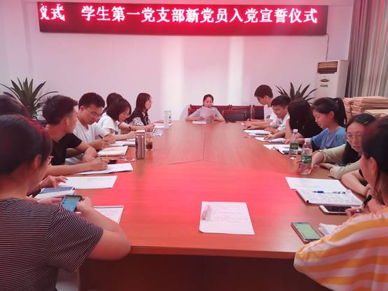 2020年6月24日下午19时整,现代农业与生物工程学院学生第一党支部在格律楼3416会议室举行新党员宣誓仪式,支部书记蒋雨珈老师和全体学生党员参加本次会议。