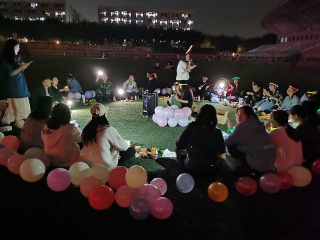 活动伊始,先由纪委点名,然后主持人向同学们讲出了本次活动主题“手拉手,心连心,共进退”,同时鼓励同学们积极加入活动,参与到活动中来。同学们听从号召坐成一圈,手里拿着荧光棒,在班委的带领下唱起了班歌,一首《岁月神偷》舒缓悠扬,在班歌的暖场下,同学们渐渐热情了起来,南操的夜色下,有欢声笑语一片。班级里的两位男同学还表演了开场节目,一套军体拳虎虎生风,一首老歌激荡豪壮,充分调动了大家对这次活动的期待与向往。之后,在主持人的带领下,同学们进行了紧张有趣的小游戏,击鼓传花,手拉手结同心等。同学在一个个小游戏中相互认识,互相了解,一起感受到班级的温暖。在进入新的学期后,重新融入到20级园艺1班这个大家庭中。