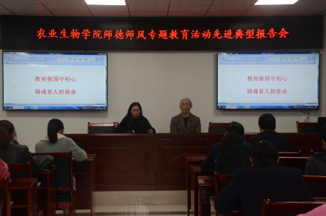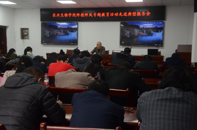 2020年10月20日下午14:20现代农业与生物工程学院在格律楼3101召开了师德师风专题教育活动先进典型报告会,本次会议由现代农业与生物工程学院党总支书记张敏主持,传媒学院院长韦济木主讲,我院全体教职工参加。