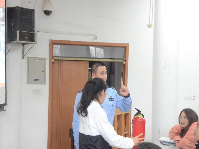 此次讲座邀请了重庆利民防火中心的郑教官,他结合了近年来在重庆地区发生的典型消防火灾事故,用事实深入浅出的为同学们讲解消防安全意识的重要性,全面介绍了日常生活中应注意的消防安全细节以及如何扑救初期火灾,火灾中如何自救、逃生等知识,同时他还亲自指导了同学操作灭火器,寓教于学,生动形象。讲座最后,教官用自己的亲身经历和失去战友的伤痛,为每个人敲响消防的警钟,引起大家共鸣,大家纷纷表示在消防安全问题上不能抱有侥幸心理。