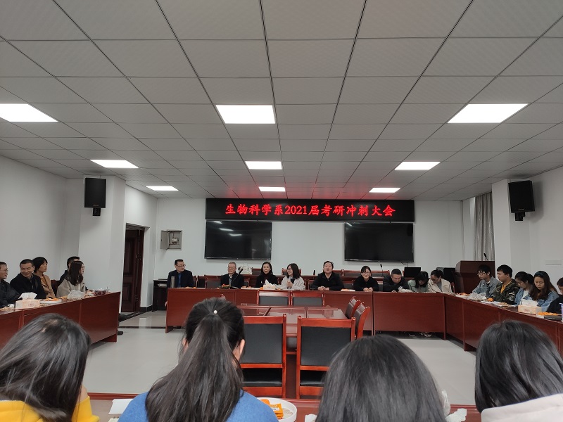 为了使现代农业与生物工程学院学生在考研的方向上有更明确的的目标和更清晰的方向,现代农业与生物工程学院于2020年11月在格律楼3101举行考研冲刺大会,会议议程分别为:生物科学系2017级考研冲刺大会、园艺园林系2017级考研冲刺大会、食品科学与工程系2017级考研冲刺大会、生物工程系2017级考研冲刺大会。会议上,分别由生物科学系系主任梁姗、宋晓宏老师、郑俏然老师、张敏书记主持,现代农业与生物工程学院书记张敏、院长汪建华及各专业教师,各班班导师代表出席讲话,2017级全体同学参加。