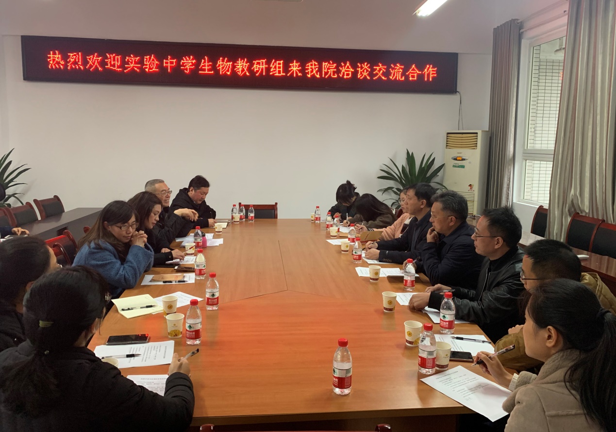 与为加强高校与中学合作交流,11月25日下午,涪陵区实验中学生物教研组教师在胡鸿敏组长的带领下来到现代农业与生物工程学院与生物科学系洽谈合作交流事宜。院长汪建华、副院长韩宗先、系主任梁姗,生物科学系学科教学论团队教师冉景盛、张燕、张小琼、赵昌琼、王慧超,青年骨干教师陈丽、孙协平参加了交流会。