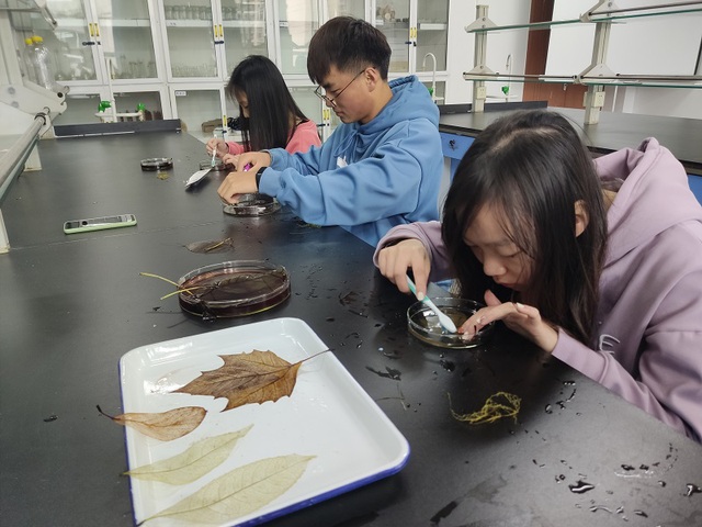 实践周伊始,宋老师、刘老师向同学们提出了本次实践周安排,分别是制作植物压花书签、植物叶脉书签、植物压花画、植物滴胶、团扇。在实践周第一天,同学们使用化学试剂将自己准备的叶片材料进行处理并用牙刷刷掉叶肉。在刷出叶脉的过程中,很多同学遇到了叶片不好处理的问题,但是在同学通过换其他材料的方法后得以解决。同学们在本次实践周过程中的时间安排是比较轻松、自由的,每个小组之间自由调整时间完成任务。实践周中,同学们互相帮助、相互协作,各自发挥艺术创作 ,做出了自己满意以及令他人赞赏的作品。在星期五每个小组对一周的过程、作品进行了全面的总结汇报。至此,为期一周的实践就这样结束了,在老师的指导下,各个小组有序的完成了老师布置的任务。在此期间,通过大家自己动手制作书签、贺卡、相框、压花画以及团扇,激发了不少同学的兴趣,增强了同学们的动手能力,同时创作出了让自己比较满意的作品,并且掌握了一些植物的采集、压制与漂染等基本操作。