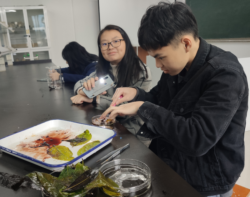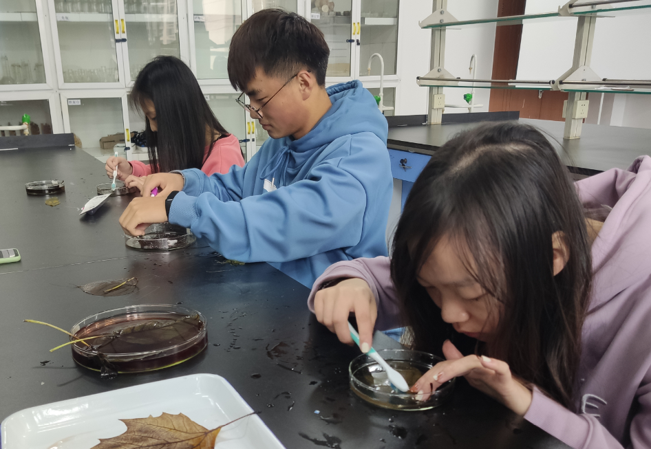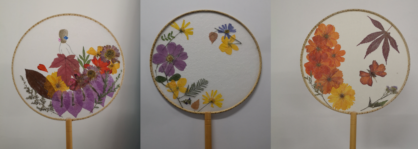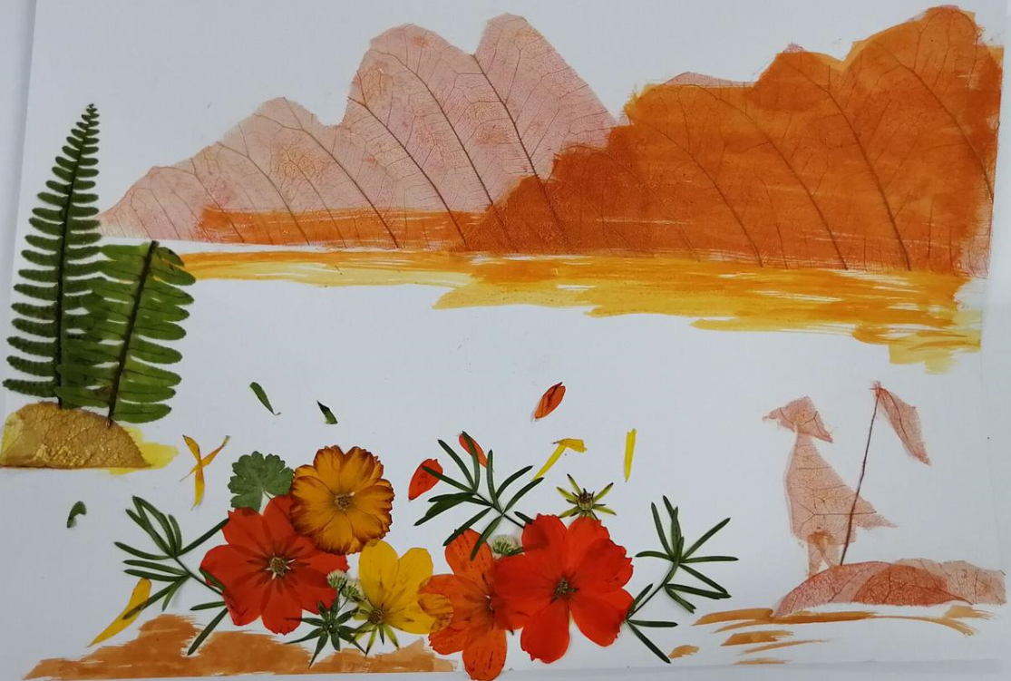 实践周伊始,宋老师、刘老师向同学们提出了本次实践周安排,分别是制作植物压花书签、植物叶脉书签、植物压花画、植物滴胶、团扇。在实践周第一天,同学们使用化学试剂将自己准备的叶片材料进行处理并用牙刷刷掉叶肉。在刷出叶脉的过程中,很多同学遇到了叶片不好处理的问题,但是在同学通过换其他材料的方法后得以解决。同学们在本次实践周过程中的时间安排是比较轻松、自由的,每个小组之间自由调整时间完成任务。实践周中,同学们互相帮助、相互协作,各自发挥艺术创作 ,做出了自己满意以及令他人赞赏的作品。在星期五每个小组对一周的过程、作品进行了全面的总结汇报。至此,为期一周的实践就这样结束了,在老师的指导下,各个小组有序的完成了老师布置的任务。在此期间,通过大家自己动手制作书签、贺卡、相框、压花画以及团扇,激发了不少同学的兴趣,增强了同学们的动手能力,同时创作出了让自己比较满意的作品,并且掌握了一些植物的采集、压制与漂染等基本操作。