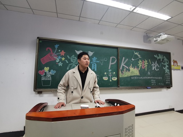 团会伊始,纪检委员陈明飞点名,班长张银玥带领全班合唱团歌。主持人为团支书王鑫同学,在他介绍了此次辩论赛流程、辩题、双方辩手后宣布辩论赛正式开始。活动过程中,辩手们运用丰富事例将自己观点徐徐道来,同学们听得目瞪口呆。尤其是后面的自由辩论时间,场上进入了白热化阶段。由于时间原因,辩论赛只进行到正方四辩总结便草草结束。最终由班委投票,反方以压倒性票数获胜。在全班同学的掌声下,主持人为反方辩手颁发了奖品毛笔各一支。此次激情辩论赛的结束,同学们久久不能平静。