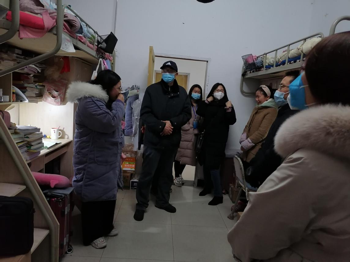 即将到来的是2021年全国硕士研究生招生考试,2020年12月24日晚20:40,现代农业与生物工程学院组织了一次走访寝室慰问考研学生活动,本次活动由党总支书记张敏、院长汪建华、副院长韩宗先等班子成员对接系科,各专业系主任带领各系专业老师,学工办主任(团委书记)李吉、年级辅导员吴林蔓,一共20余名老师参与慰问。