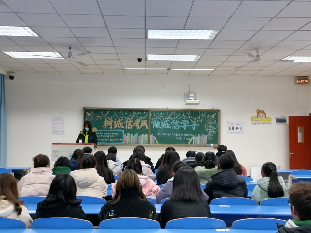 班会伊始,主持人向同学们说明并介绍了本次主题班会的内容。随后,主持人组织同学们仔细阅读《学生手册》上关于考试规定和违纪处分的内容,并进行了主题讨论。紧接着,各班班长总结本次班会并组织每位同学签署考试承诺书。大学第一学期即将结束,同学们即将迎来第一次期末考试。那么在考场上,每位同学都应当遵从一个准则,那就是诚信。诚信是成为一名优秀公民的基本要求。只有用诚信以待人,他人才会真诚相待。不仅仅是日常生活中,在考试时我们更应该遵守考场纪律,讲究诚信。最后,张书记、辅导员对每位同学表示最真挚的祝福,每位农生学子在期末考试中取得优秀成绩。