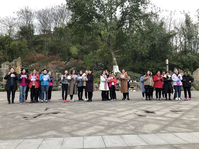 本次活动采取郊游的方式让教师们走出校园,亲近自然,老师们从学校集体出发步行到达指定地点铜鼓湖。到达目的地后老师们结伴爬山、游湖、赏花、拍美照,此情此景,此时此刻,老师们卸下了平日工作里的疲惫,彻底地融入到了大自然。然后还举行了诗歌朗诵《祖国颂》,吟诵了老师们对祖国的赞美和热爱,这是自然和书香的碰撞、交融。