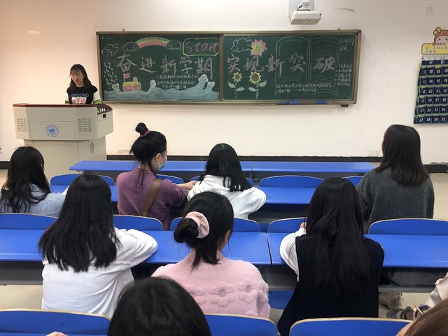 班会伊始,由纪委清点各班人数并报给纪检部。随后,各班在文体委员的带领下嘹亮的合唱了班歌。紧接着,主持人介绍了本次班会的开展目的,即通过这次活动想让同学们意识到成功并不是一蹴而就的,它需要我们树立远大的目标,脚踏实地为之不懈奋斗,从一而终。同时,也围绕本次主题向同学们提出了诸如“为实现自己新学期的新目标我们应该如何做出规划?”“作为新时代青年,我们怎样树立自己的理想以展现自己的担当?”等问题。激烈的讨论后同学们一致认为奋发向上、开拓进取的精神是实现目标不可或缺的自身条件,营造严谨、勤学的生活氛围是每个人不可推卸的责任;在日常的学习生活中,要善于规划,善于反思,善于总结并为之行动。