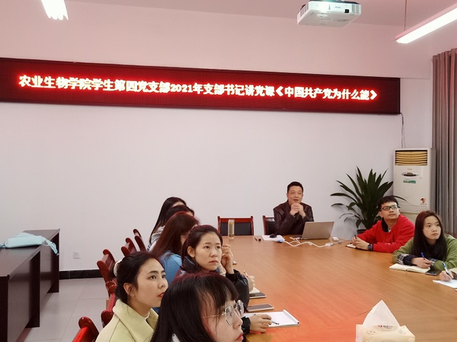 正值中国共产党成立一百周年之际,为加强学生党员对中国共产党党史的学习,2021年3月26日下午3点,现代农业与生物工程学院学生第四党支部在格律楼3416开展了关于《中国共产党为什么能》为主题的党课,本次党课由学生第四支部书记李吉同志主讲,第四支部全体学生党员参与。