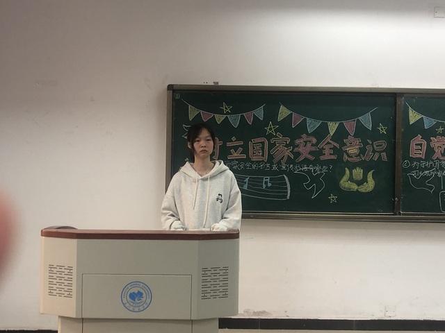 班会伊始,主持人提前让班上人员进入会议状态,清点好人数后报给纪检部,随后组织班级合唱班歌。紧接着主持人针对主题提出两个问题---当下中国在发展中还存在哪些安全风险以及当代青少年怎样履行维护国家安全的责任和义务,同学们围绕主题展开热烈讨论并举手回答问题。接下来,由主持人进行安全宣讲并对此次班会进行总结发言;最后,由班会成员推荐书籍以及班委争对本周班级要务进行事务传达。
