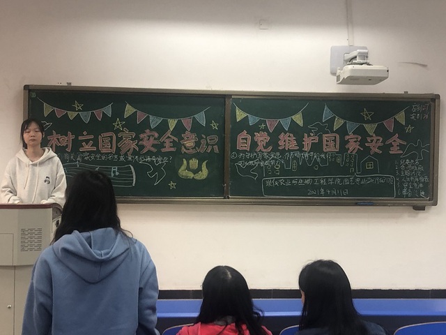 4月15日是《中华人民共和国国家安全法》颁布实施以来的首个全民国家安全教育日。为了培养学生的国家安全意识、风险意识、和保密意识,自觉履行维护国家安全责任义务,织密织牢国家安全防护网,筑起坚不可破的国家安全墙,2021年4月11日16时20分现代农业与生物工程学院在崇礼楼309–324(308,318除外)开展了以“树立国家安全意识,自觉维护国家安全”为主题的班会活动。本次班会由班级负责人主持,全体大一、大二、大三成员参与。