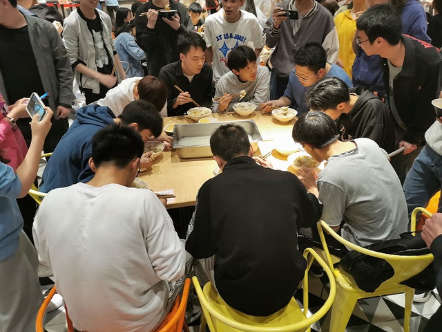 活动伊始,主持人杜意介绍包饺子特色班会的举办意义及活动流程。首先以自愿形式组成5人以上小队去后厨帮忙剁馅,切葱。其余同学则以活动前随机分组方式与自己组员坐好帮忙剥葱,并进行组内自我介绍。第一个活动项目,唱班歌。通信工程1班以男女寝室代表进行班歌比拼,其余同学自由投票,最终男方寝室获得优胜奖励。而生物科学1班则以递话筒方式进行班歌合唱,递到谁的嘴边就要接下歌词,直至班歌唱完。第二项活动项目随着后厨同学端着肉馅、佐料前来而展开序幕。秉持着卫生健康的原则,同学们先行洗手后再兴高采烈地拿碗筷,抢材料,争鸡蛋,倒香油。小组之间进行包饺子比拼,争先包得又快又好看。期间生科1班团支书晏浩月进行安全宣讲。包好的饺子委托南苑食堂“开饭了”后厨处水煮,在等待饺子煮好途中,主持人组织组内分享自己的五一假期计划。当热气腾腾的饺子端上桌,即是第三项活动项目的展开——“大胃王比赛”。同学们自主参赛,每人饺子数量相等,用时最短者获胜。奖励一颗菠萝及一瓣哈密瓜。最后,同学们把多余的饺子用餐盒打包自行带走,桌椅收拾干净,有序离场。