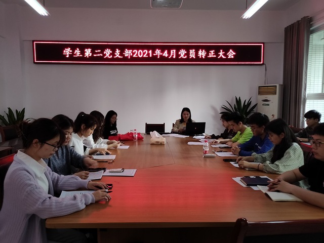 为如期开展预备党员转正工作,现代农业与生物工程学院学生第二党支部全体党员于2021年4月27日18时20分于3416会议室展开2021年4月党员转正大会