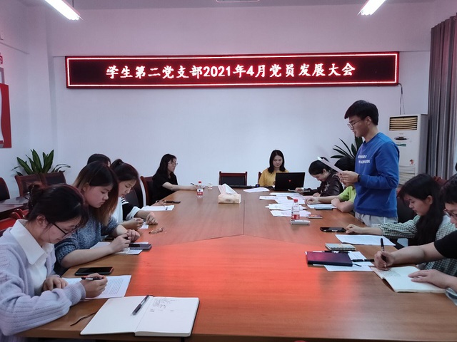 为提升党员的积极性,为党注入新的力量。现代农业与生物工程学院学生第二党支部于2021年4月28日于3416会议室召开了学生第二党支部2021年春四月党员发展大会。本次会议由学生第二党支部书记李明方同志担任主持,第二党支部应到党员22人,实到党员17人,5人请假。
