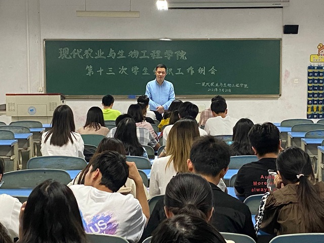 时间飞逝,现代农业与生物工程学院第十三次学生骨干例会如期而至。为便于学生与老师的工作更顺利进行,现代农业与生物工程学院于2021年5月20日18:10在正心楼109教室召开了第十三次学生组织工作例会,此次会议由学生处办公室主任李吉老师主讲,2019级、2020级全体学生骨干和各班班委参加。