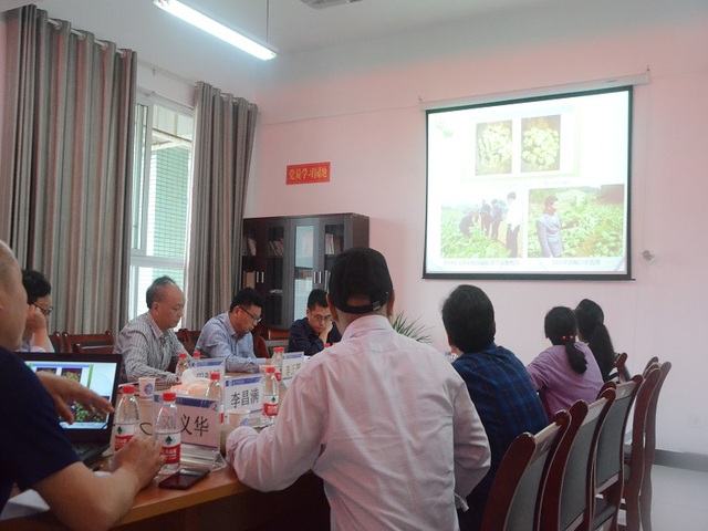汇报伊始,刘老师率先提出了项目考核五大指标。紧接着,刘老师展示了该项目的执行情况:(一)特晚熟品种选育:胞质雄性不育系的选育、特晚熟优良父本系的选育以及特晚熟品种选配、筛选、区试、生产试验及其国家登记;(二)特晚熟品种配套技术研究与集成:父本中心种植方法的研究、菌核病的防治技术研究、高效丰杂交制种技术的集成与示范应用以及在不同海拔区域,“三月青”在晚季节条件下播期、密度、施肥等可控栽培因子对产量及主要商品性影响;(三)三月青及其配套高效栽培技术的示范应用。最后,刘老师还提出存在的主要问题,瘤茎发生裂口的问题和进一步提高杂交榨菜制种产量的问题。至此,此次项目执行情况汇报圆满结束。