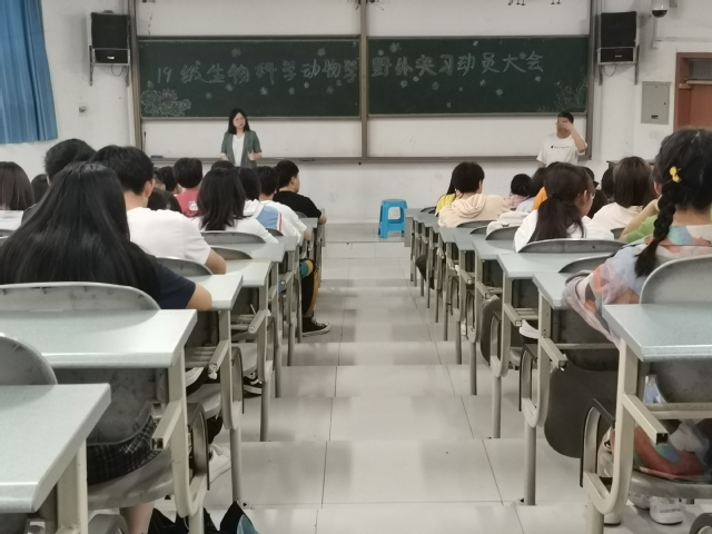 为了丰富同学们的阅历,让同学们能够在大自然中更加亲近了解动物,在亲身经历中感受动物世界的魅力,通过团队合作的方式在实践中巩固理论知识。2020年5月21日,现代农业与生物工程学院生物科学专业在格律楼03阶梯教室开展了“动物学野外突习动员会”,本次活动由系主任梁姗老师和动物学实验老师李宏群老师主持,另有其他几位老师协作讲解本次活动事项,19级生物科学专业全体同学参与。