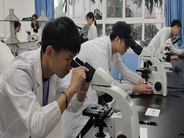 本次比赛为考察同学们对显微镜的操作是否正确,要求同学们利用仪器在10分钟内观察到清晰的物象。为了保证考评结果公正客观,大赛全程由18级学姐学长监考。比赛开始后,同学们熟练地进行了调节亮度,在载物台上的适当位置将临时装片固定好等操作,并通过调节包括粗准焦螺旋与细准焦螺旋等部件使物象清晰。整个过程严肃安静,同学们操作显微镜认真细致,每一步都小心且谨慎,并在短时间内达到了目标。赛后,同学们对自己实验时的某些细节错误进行了总结改正,反思到在平时实验中就应该规范实验操作。且一致认为此类活动应多多举行,有助于大家巩固实验操作基础知识,为我们的科研活动以及以后的课堂实验教学夯实基础。