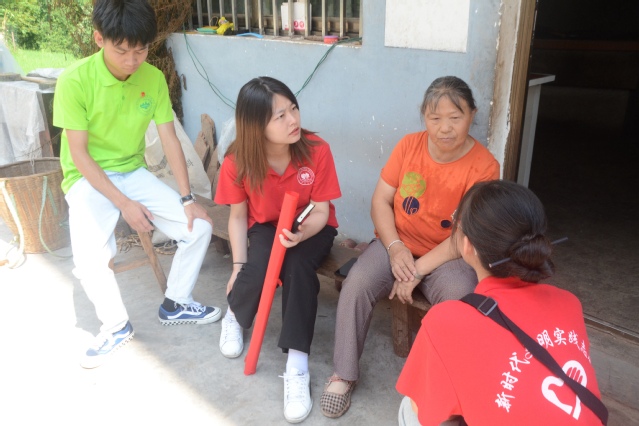 为此,服务团在访问的农户家门前进行了食品安全宣讲,其中以食品专业所学的食品安全与膳食搭配原理为知识基础,向村民们重点讲述了“科学减糖,健康生活”的相关知识。针对金龙寨村村民的实际饮食习惯,服务团成员为村民们提供了食品健康与安全等相关的饮食搭配建议。