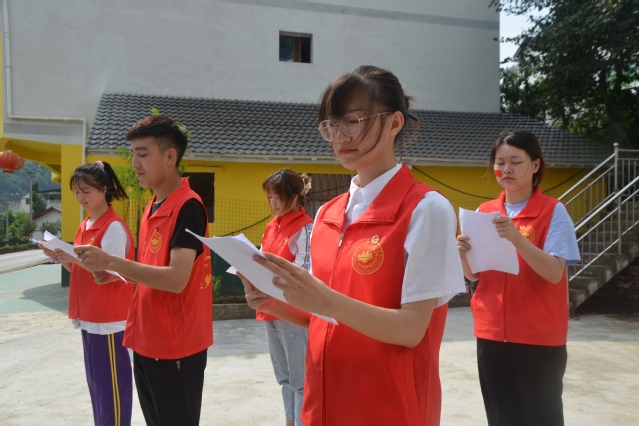 展现青春活力,舞动神采飞扬。此次文艺汇演由手语操《国家》正式拉开帷幕。随后,服务团成员熊亚林、何江杰分别演唱歌曲《平凡之路》、《天路》。为文艺汇演增光添彩。接着一首朗诵诗《我的祖国》献礼伟大的祖国,赞颂祖国繁荣昌盛,国富民强。