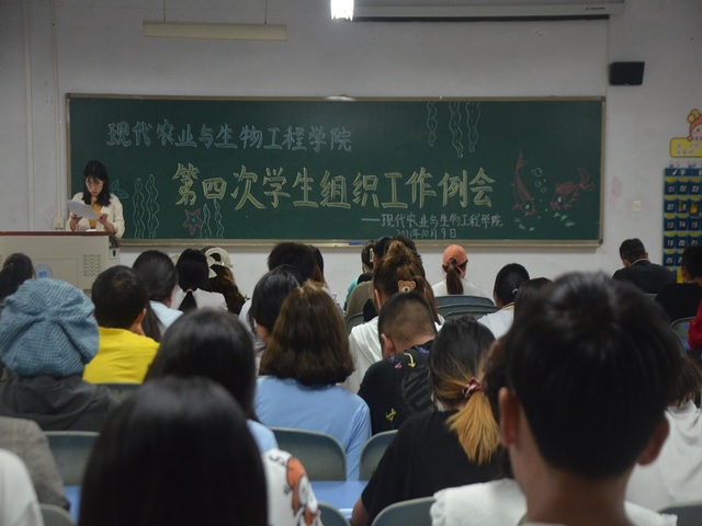 至此现代农业与生物工程学院第四次学生组织例会到此结束,相信通过此次例会让同学能够真正的意识到学院对学生工作的重视,以及在工作上的面面俱到,最后希望各学生骨干认真落实各项工作,共同建设现代农业与生物工程学院。