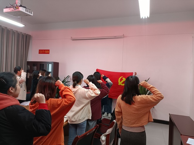 最后,全体党员面向党旗进行入党宣誓。本次发展会议顺利开展,现代农业与生物工程学院学生第三党支部成功接收了四名预备党员,为推进支部工作注入了新鲜的血液,进一步扩大了党员队伍。