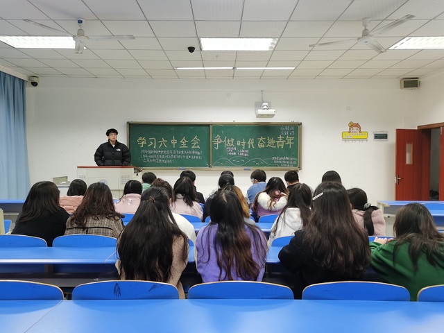 会议伊始,由各班团支书介绍本次团会主题以及目的在于深入学习十九届六中全会精神,引领当代青年知党史,学党史,树立正确、积极的价值观,并加强思想政治建设,丰富政治生活。紧接着,由纪律委员点名,明确班级到场人数以及请假人数,由文体委员带领合唱团歌,一展高昂的精神面貌。接下来,团支书详细的向同学们介绍此次会议的重要意义并组织同学们学习《中共中央关于党的百年奋斗重大成就和历史经验的决议》文件,加强政治理论学习,提高思想觉悟。同学们在学习后,积极举手发言,表示将大力弘扬十九届六中全会精神,坚持理想信念,坚守初心使命,勇于自我革命,将会议的总结经验落实到学习生活中。
