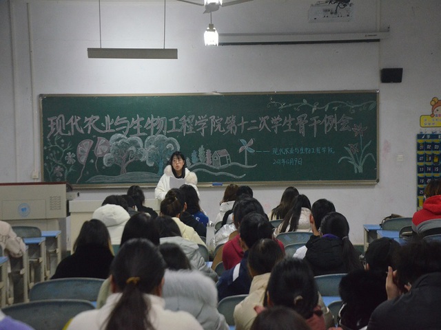 为总结上周工作经验,明确下周的工作重点,现代农业与生物工程学院于2021年12月9日在正心楼109教室开展第十二次学生组织例会,本次例会由胡代芳、李吉老师共同主持,全体学生干部参加。