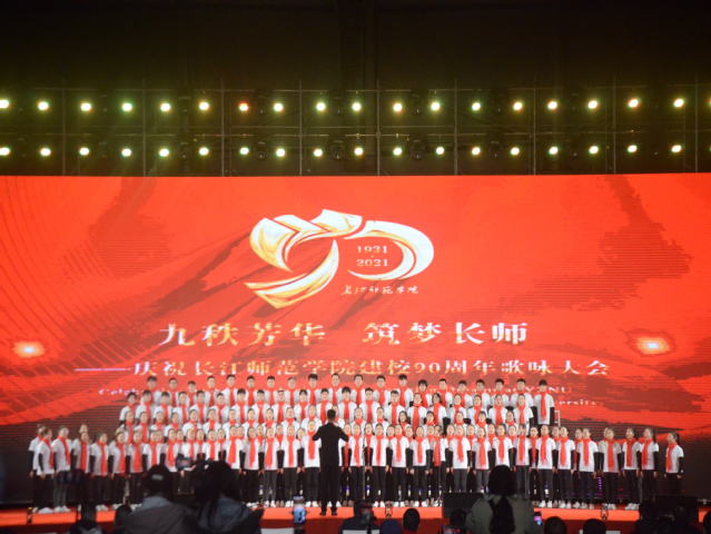 为庆祝党的百年华诞和长师建校九十周年,长江师范学院于2021年12月19日晚上7:00在行健体育场隆重举行“九秩芳华,筑梦长师”的歌咏大会。本次大会由各学院合唱团参赛,各级领导、广大校友和学生代表出席观看。