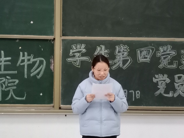 为如期开展预备党员转正工作,现代农业与生物工程学院学生第四党支部于2021年12月12日下午16时20分于格律楼04阶梯教室开展了支部党员大会。此次大会由支部书记李吉老师主持,学生第四党支部全体党员参加。