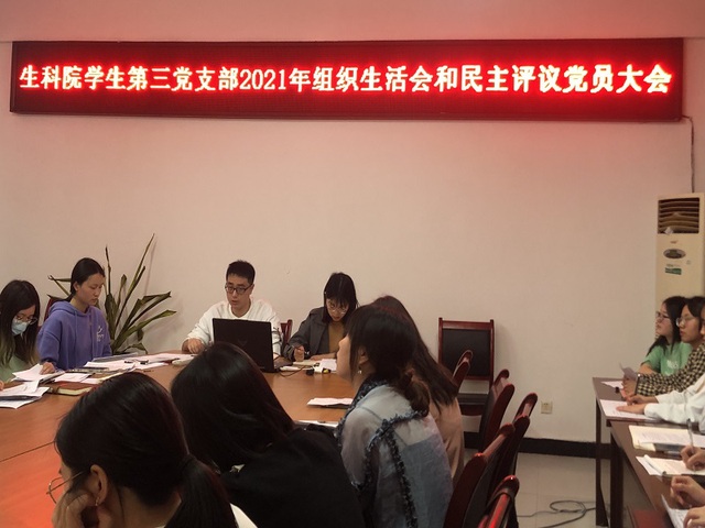 现代农业与生物工程学院学生第三党支部于2022年3月11日16:00在格律楼3416召开2022年度基层党组织组织生活会和开展民主评议党员的指导意见,会议由党支部书记胡代芳老师主持,全体学生党员参加