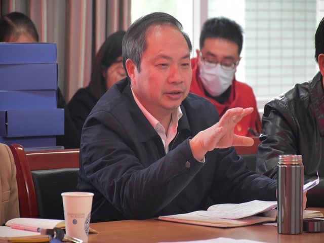 第二项议程,交流发言。宣传部部长盛全生提出二级学院“文化区角”评比活动,“文化区角”的关键在于设计,而不是它的大小;纪委书记赵骏提到现代农业与生物工程学院作为二级学院参观的一个样板,可以将参观和科研进行融合,从而体现一院一中心、党建和思政的成果,起到引领、支撑、核心、辐射和凝聚的作用。